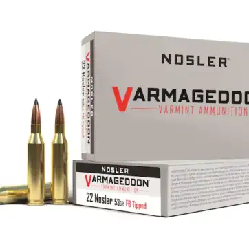 Nosler Varmageddon Ammunition 22 Nosler 53 Grain Polymer Tip Flat Base 500 Round