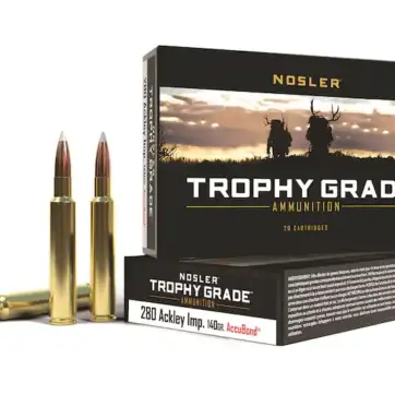 Nosler Trophy Grade Ammunition 280 Ackley Improved 140 Grain AccuBond 500 Round