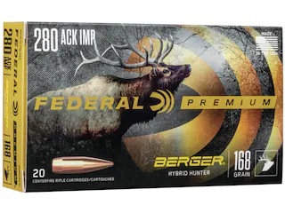 Federal Premium Ammunition 280 Ackley Improved 168 Grain Berger Hybrid Hunter 500 Round