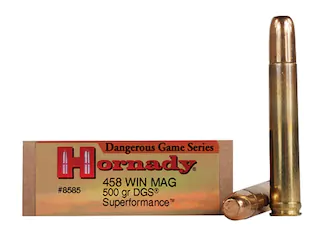 Hornady Dangerous Game Superformance Ammunition 458 Winchester Magnum 500 Grain DGS Solid Round Nose 500 Round