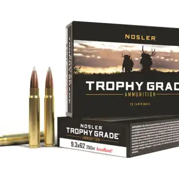 Nosler Trophy Grade Ammunition 9.3x62mm Mauser 250 Grain AccuBond 500 Round